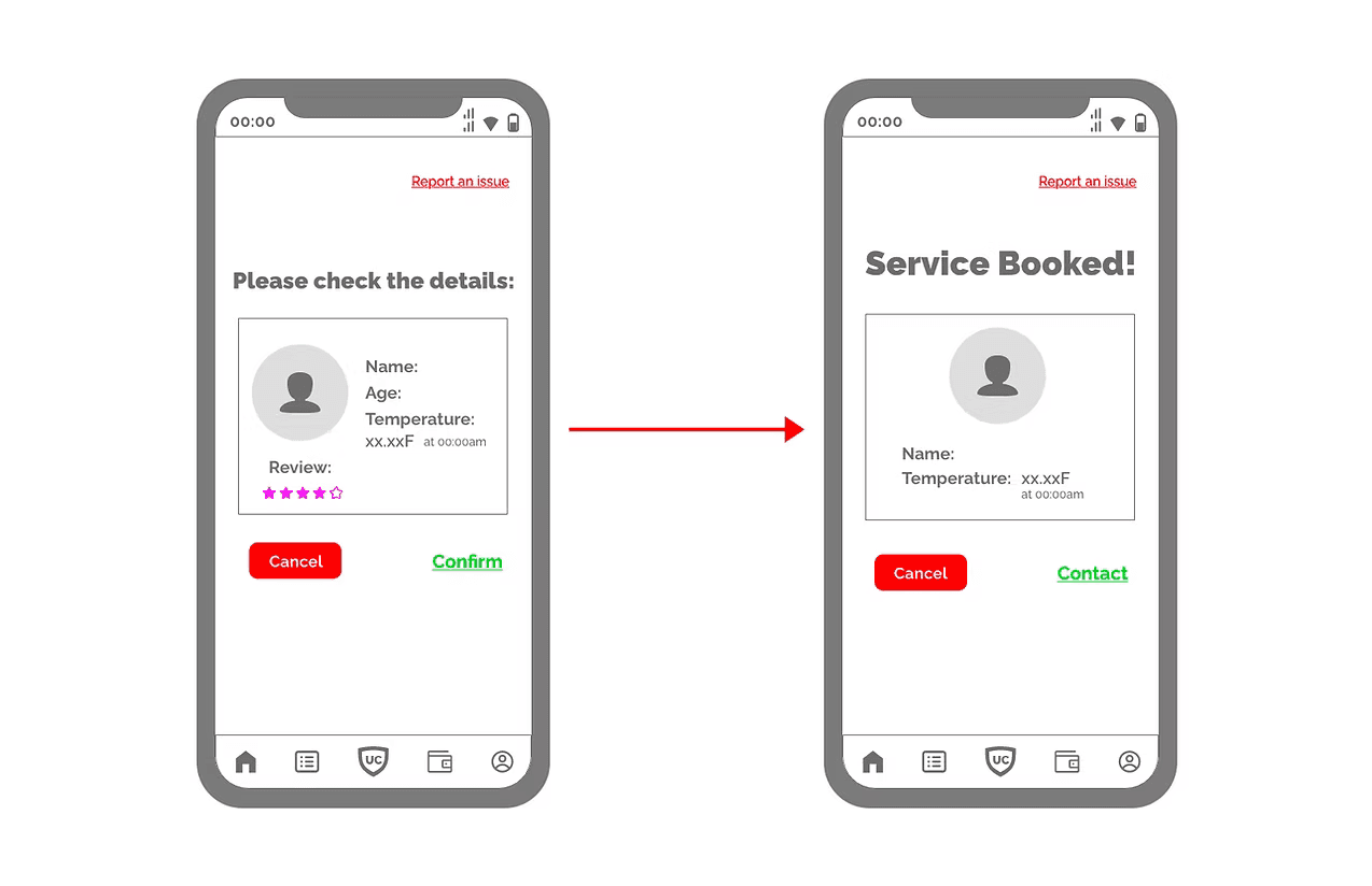 Instead of providing just the temperature of the service member visiting, a time stamp was also included to build trust to reassure the customers and build a sense of trust